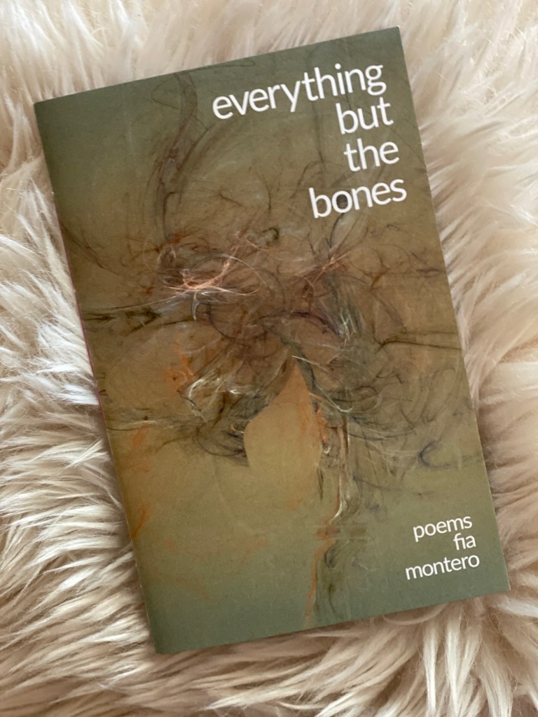 Fia Montero’s Everything but the Bones is a striking debut chapbook that feels both ephemeral and enduring — like breath fog on glass that somehow leaves a permanent mark. Published by the ever-intimate Seven Kitchens Press as part of the Allison Joseph Series (which champions emerging BIPOC voices), Montero’s collection fits seamlessly within the press’s ethos: spare, tender, and fiercely attuned to the body and its histories.